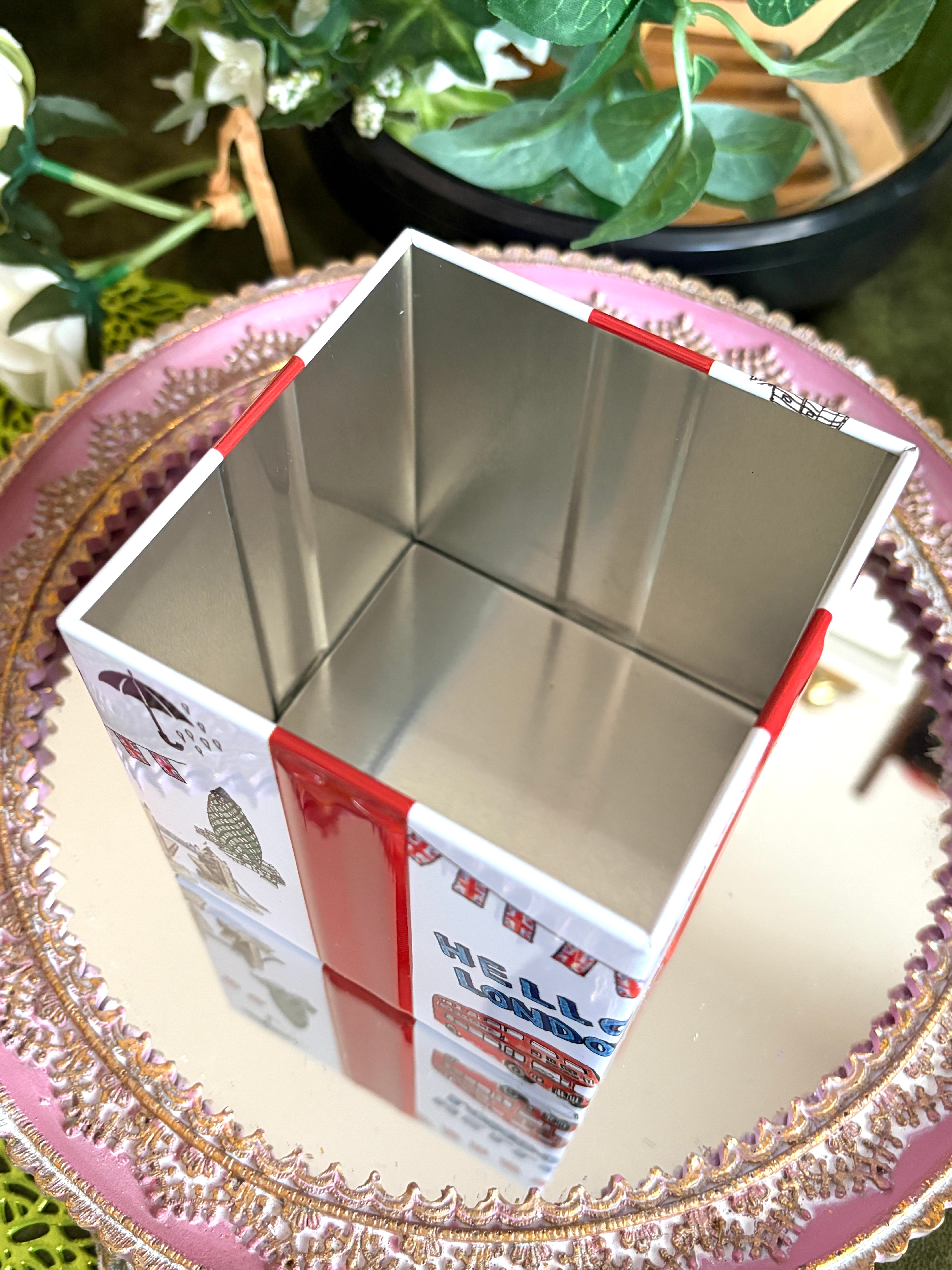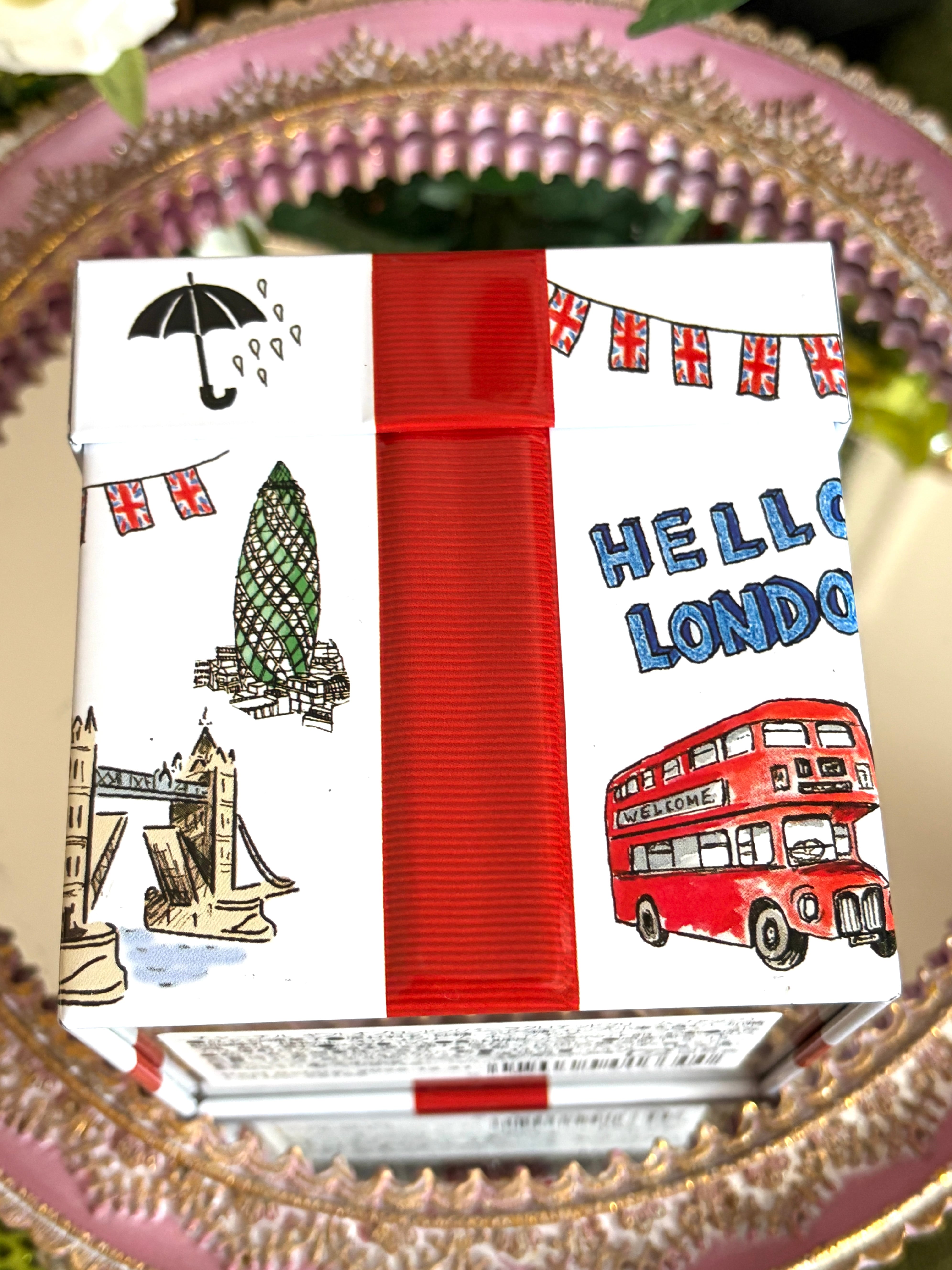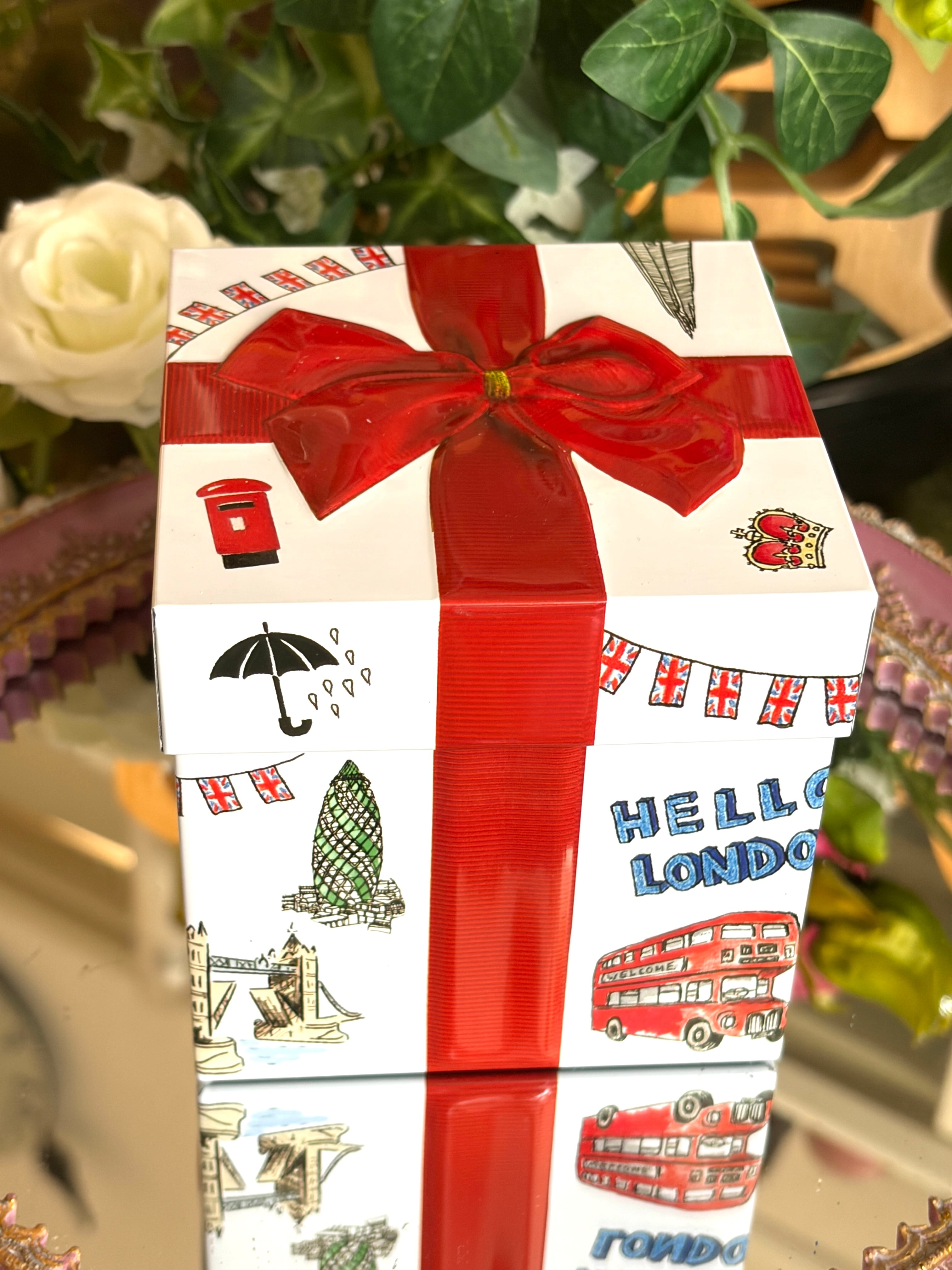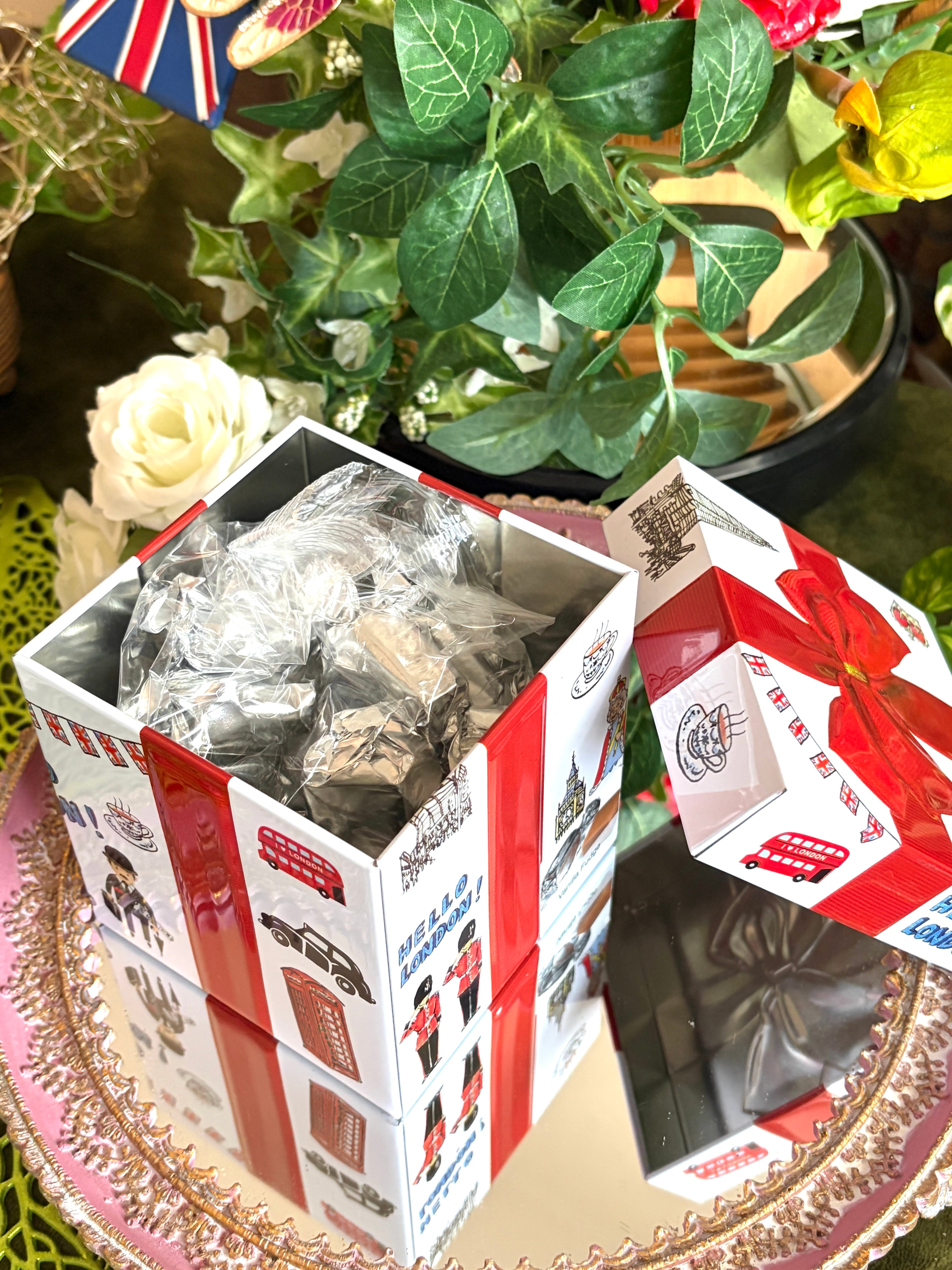 ロンドンの建物などを散りばめたギフト缶です