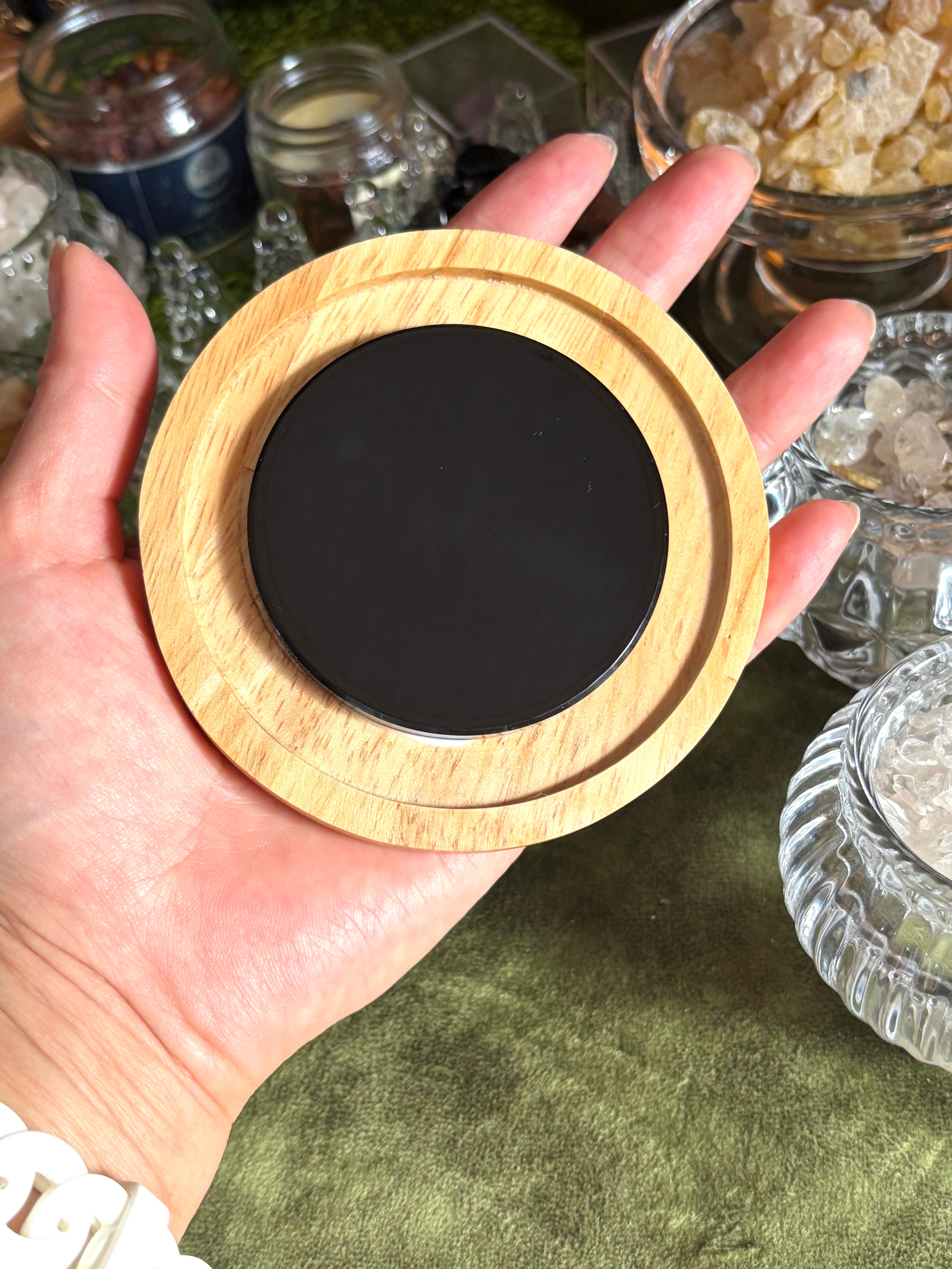 ◆内容:木枠付きオブシディアンミラー