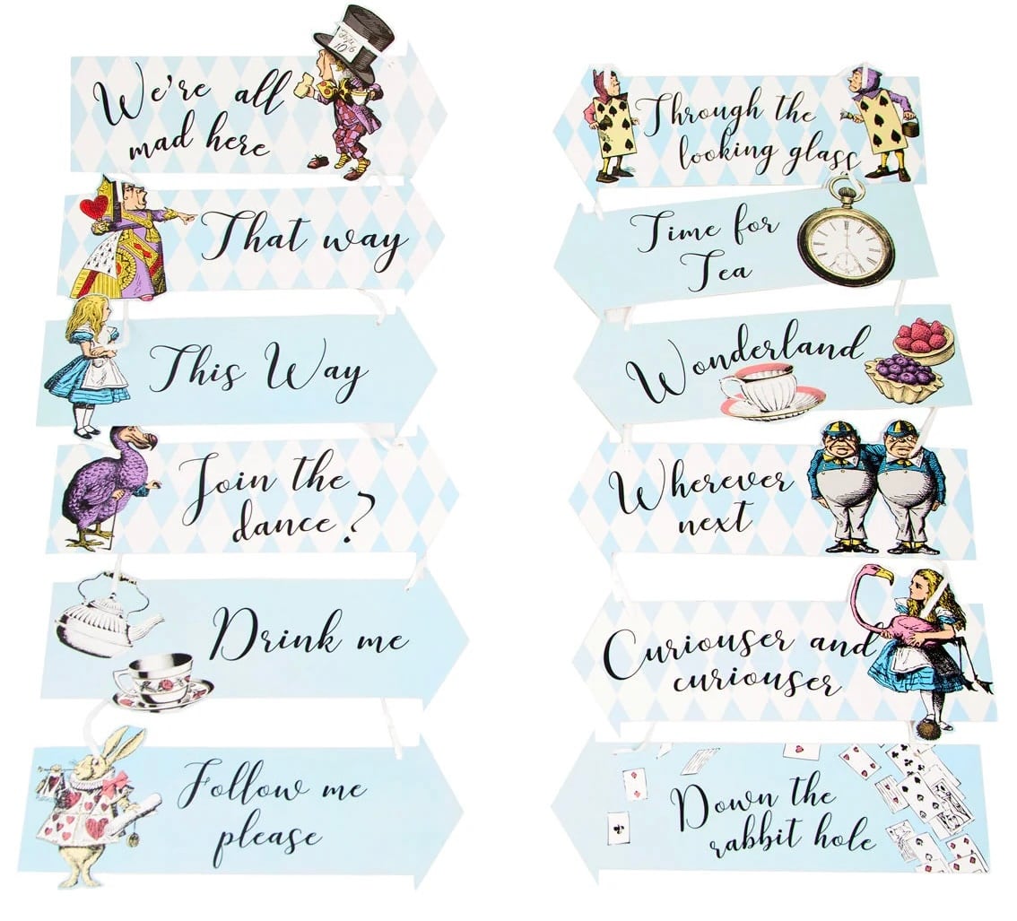 こちらは不思議の国のアリスから12の標識のセットです